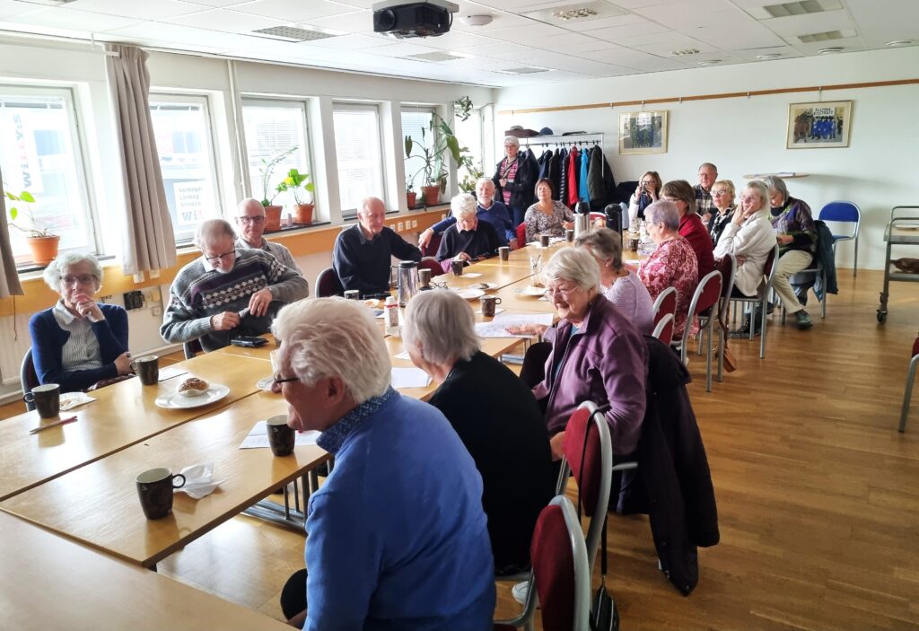Ett webbinarium kan man sitta hemma och delta i via sin egen dator, men då går du miste om den sociala samvaron i SeniorNet Östersund, det fika du bjuds på och det givande samtal som följer på föredraget. Ett tjugo-tal intresserade dök upp och hälsades välkommen av SeniorNet Östersunds ordförande Ann-Mari Jonsson, dagen till ära iförd sin gröna Digitalidag-tröja. Glädjande noterade hon bland de närvarande ett antal intresserade presumtiva nya medlemmar.